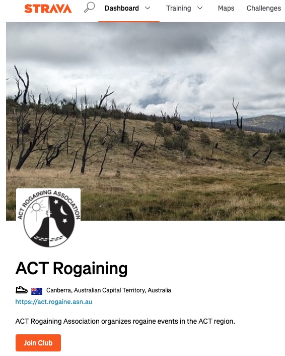 Do you put your rogaines onto Strava? If so, please join the club "ACT Rogaining" so that we can link your GPS track onto the RogaineResults website. The more tracks that we can get for teams, the more interesting the post-event analysis of "what should have we/they done". |